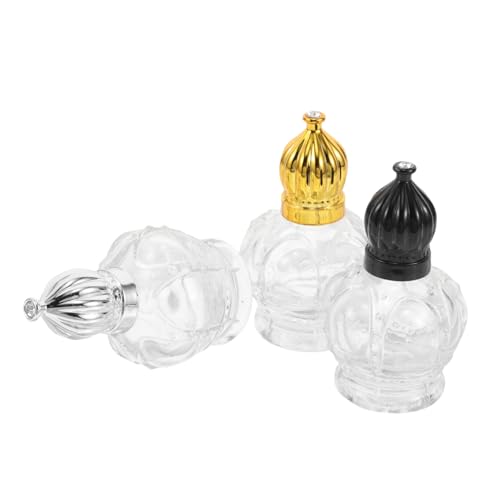 PACKOVE 3pcs Essential Oil Roller Bottles Travel Perfume Dispenser Vintage Glass Crown Lid Gold Black Silver