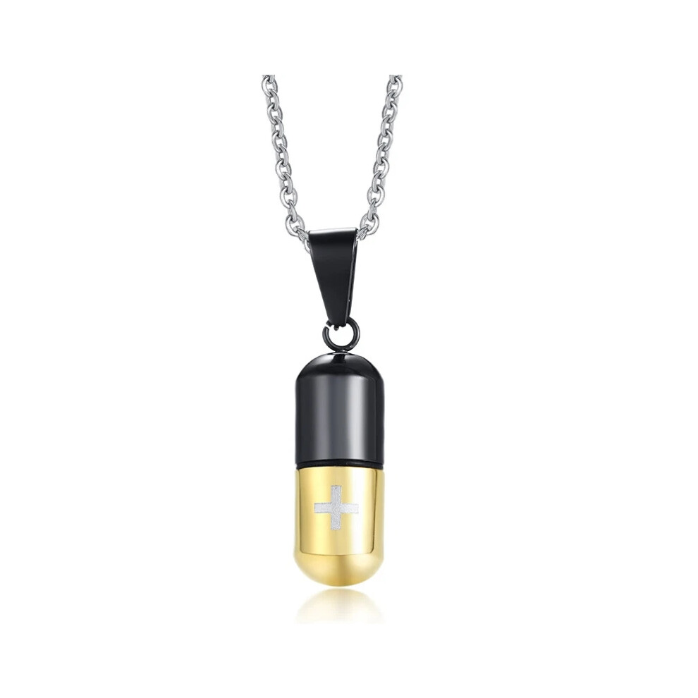 (Black Gold) New Women Men Pendant Necklace Perfume Bottle Medical Pill Capsule Container