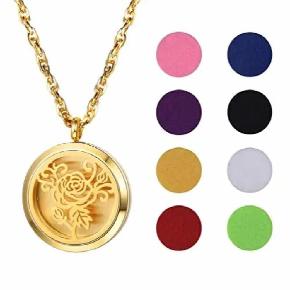 Diffuser Perfume Locket Pendant Charm Delicate Rose Flower Hot Women Valentine Jewelry Gold/Black/Silver Colors PSP2962