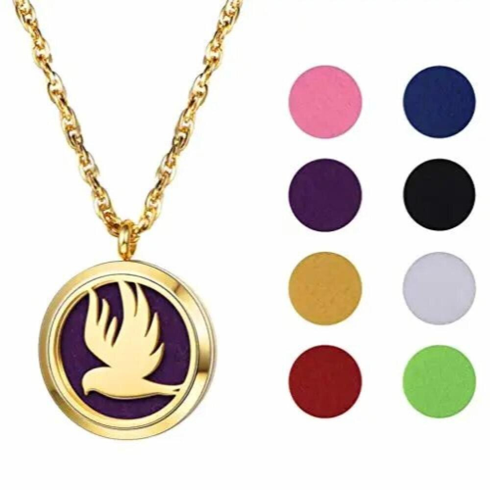 Diffuser Perfume Locket Flying Bird Pendant Necklace Stainless Steel Women Valentines Jewelry Gold/Black PSP2961