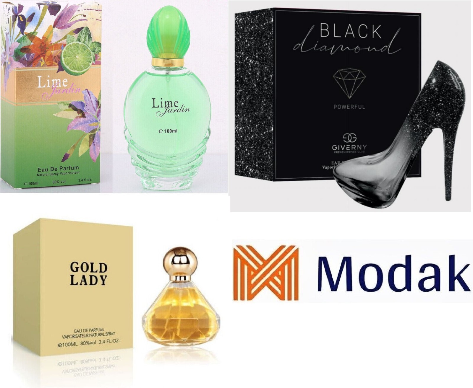 Modak 3 Pack women Perfume Gold Lady ,Black Diamond ,Lime Jardin EDP 100ml
