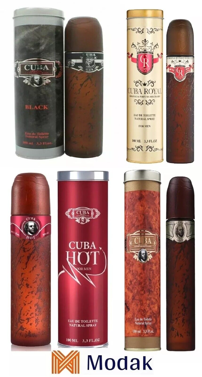 Modak 4 Pack Mens Perfume CUBA GOLD,CUBA HOT,CUBA BLACK,CUBA ROYAL EDT 100ml