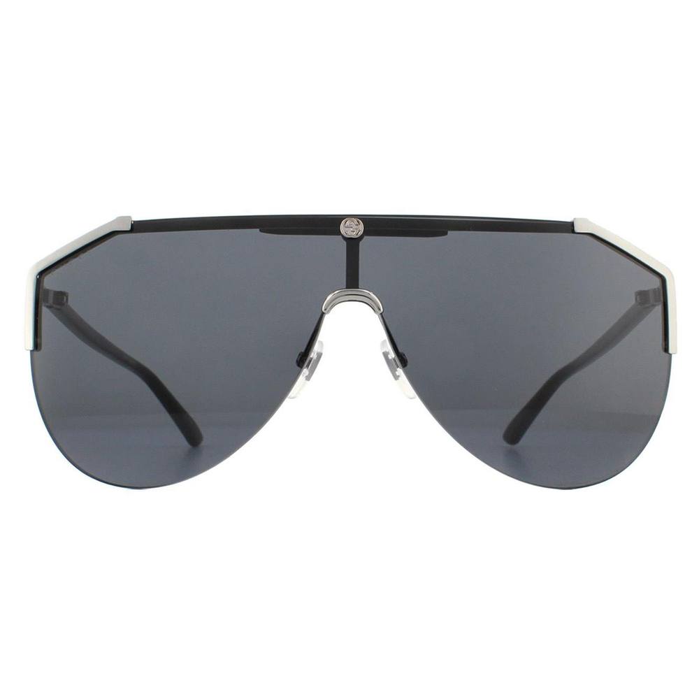 Gucci Men Shield Ruthenium and Black Grey Sunglasses