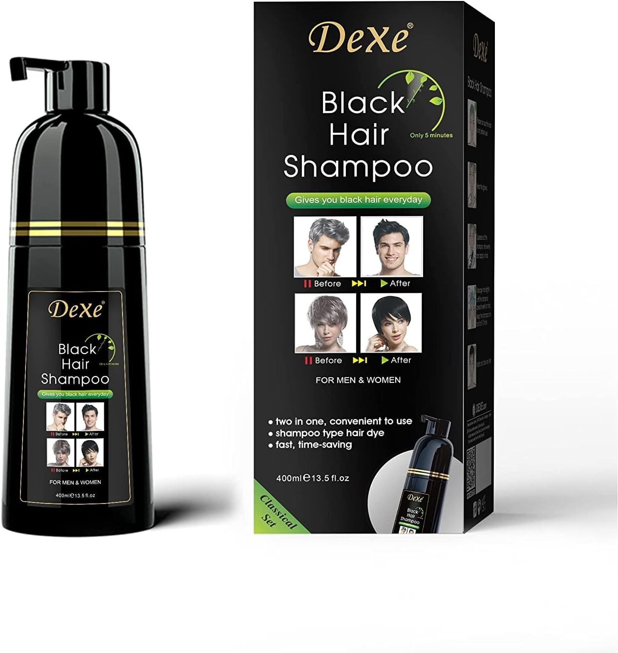 400ml Dexe Black Hair Shampoo for Natural Hair, Instant Hair Blackening Dye Hai