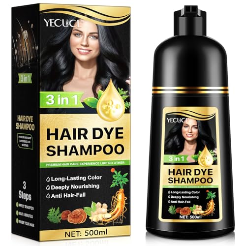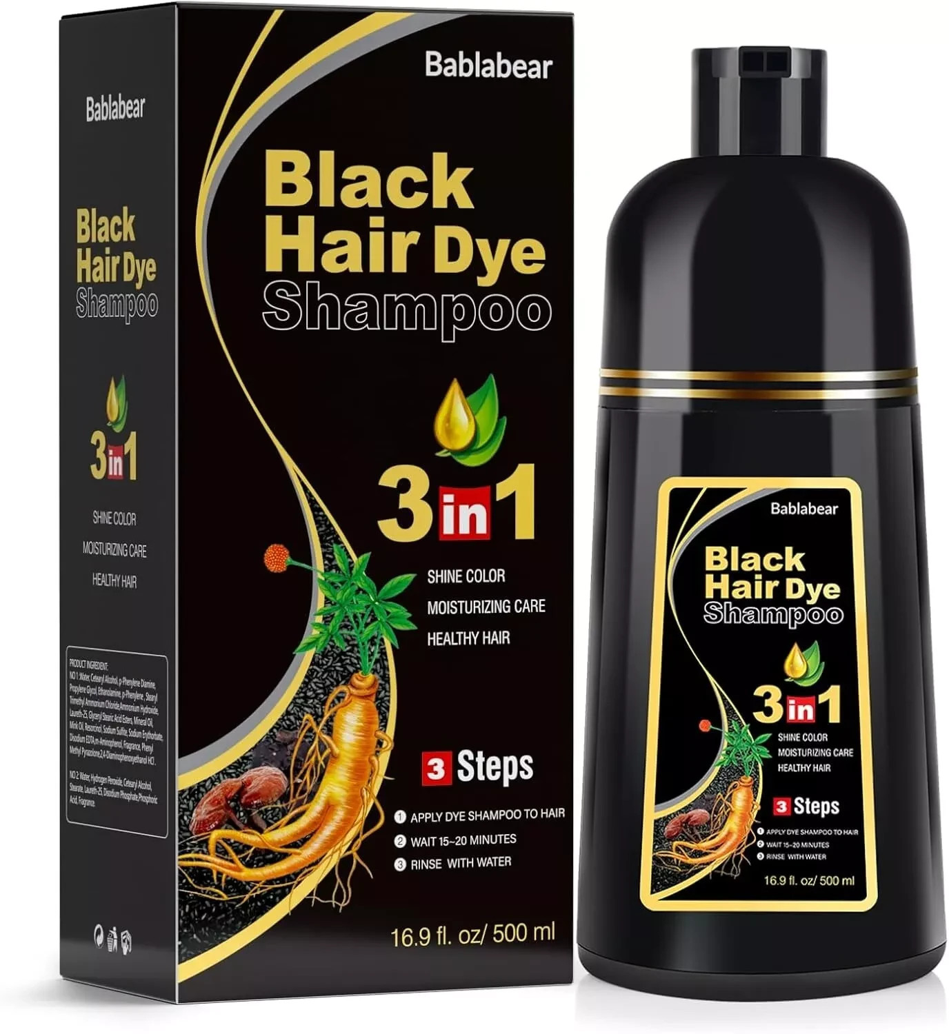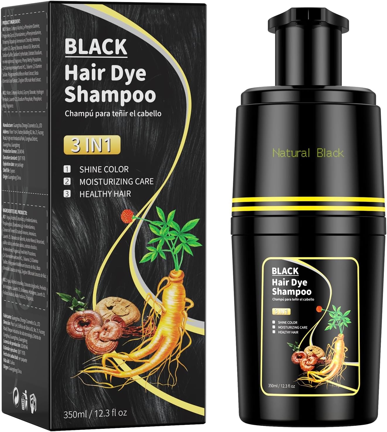 Black Hair Dye Shampoo 3 in 1, Black Hair Shampoo for Women and Men Gray Hair,
