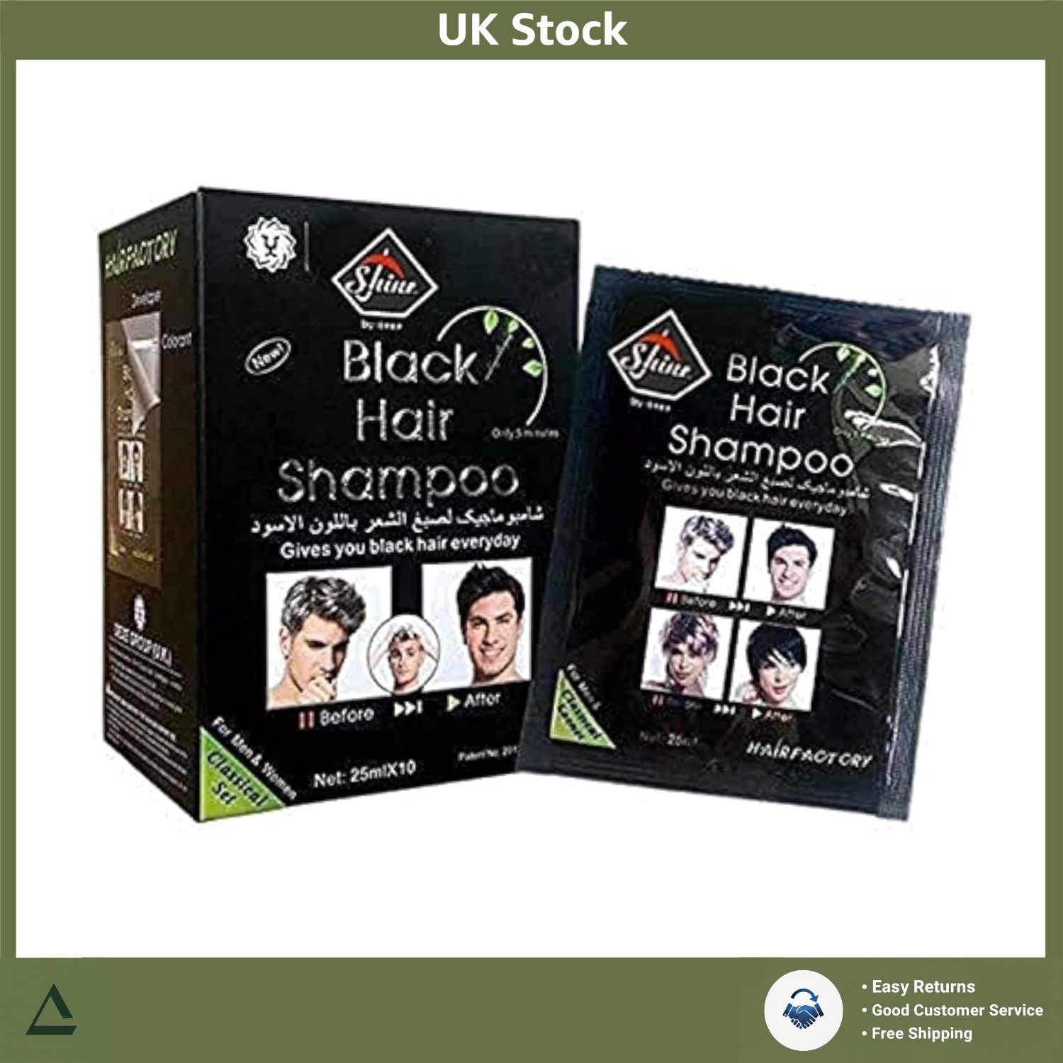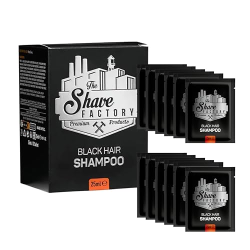 The Shave Factory Black Coloring Hair Shampoo (10 X 25ML) – Direct Grey Coverage For Men – Ammonia Free And User-friendly Formula – Long Lasting Natural Black Color