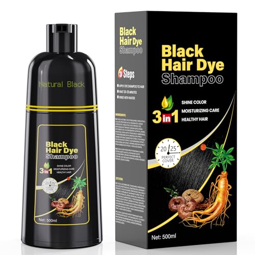 Black Hair Dye Shampoo 3 in1, Black Shampoo Hair Dye for Gray Coverage, Natural Hair Color for Women Men, Herbal Formula, Ammonia-free, Lasts 30 Days, 500ML (16.90 oz)