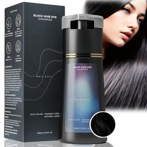 Black Hair Dye Shampoo for Men and Women, Instant Hair Colour Shampoo for Grey H
