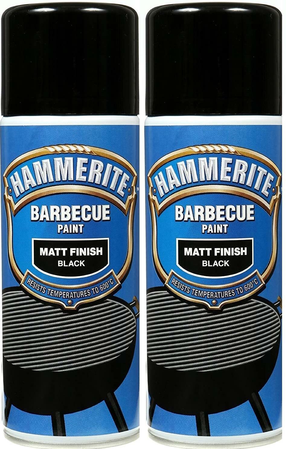 2x Hammerite BBQ Barbecue Spray Paint Aerosol 400ml Hi-Heat Matt Black