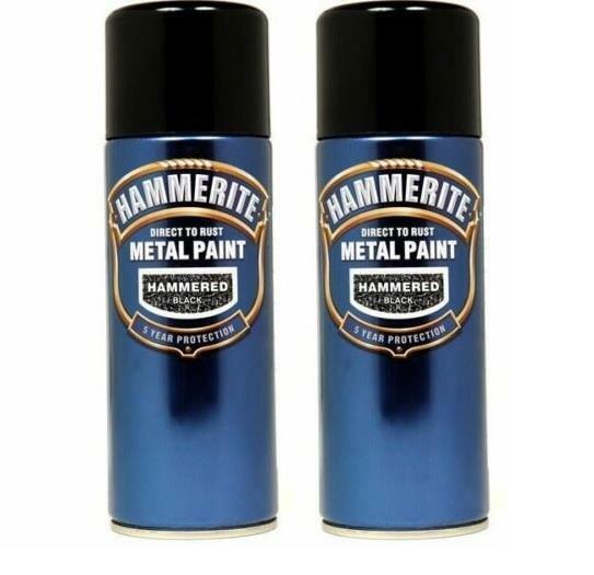 2x 400ml Hammerite HAmmERED BLACK Direct to Rust Metal Spray Paint Aerosol 400ml