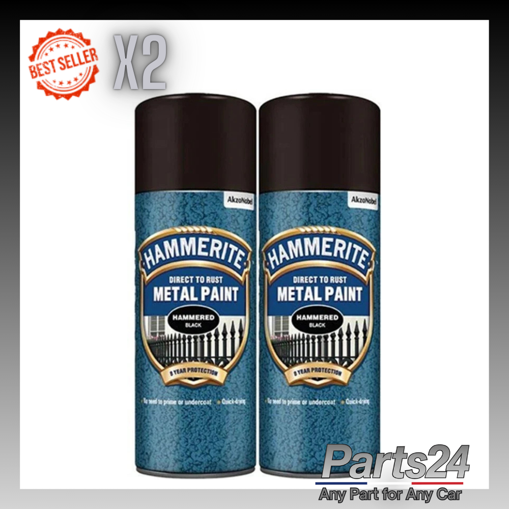 2x Hammerite Direct To Rust Hammered 400ml Black Fast Drying Spray Paint