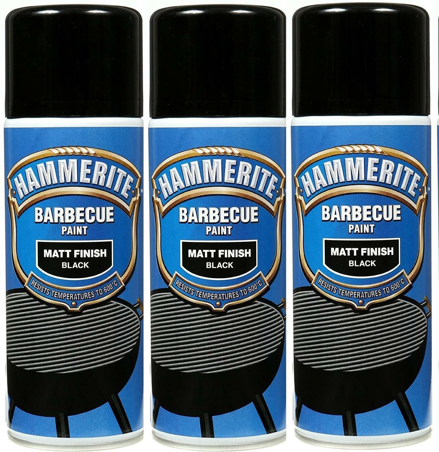 3x Hammerite BBQ Barbecue Spray Paint Aerosol 400ml Hi-Heat Matt Black