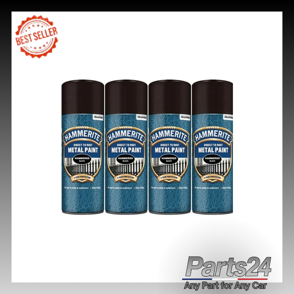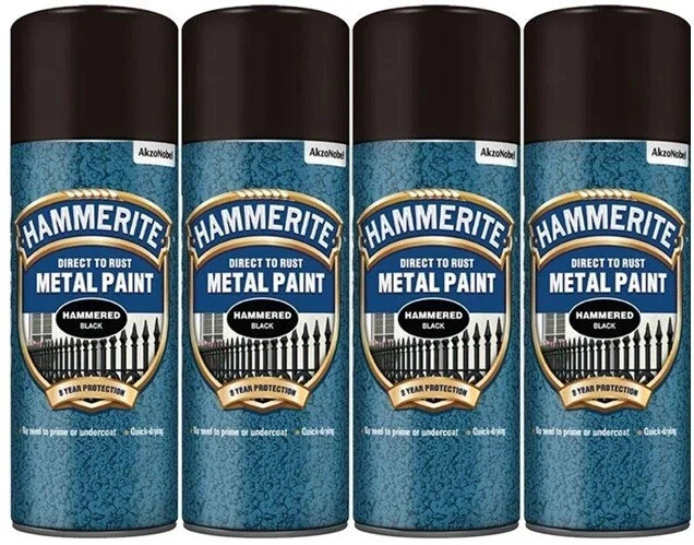 4 x Hammerite Direct To Rust Hammered 400ml Black Fast Drying Spray Paint