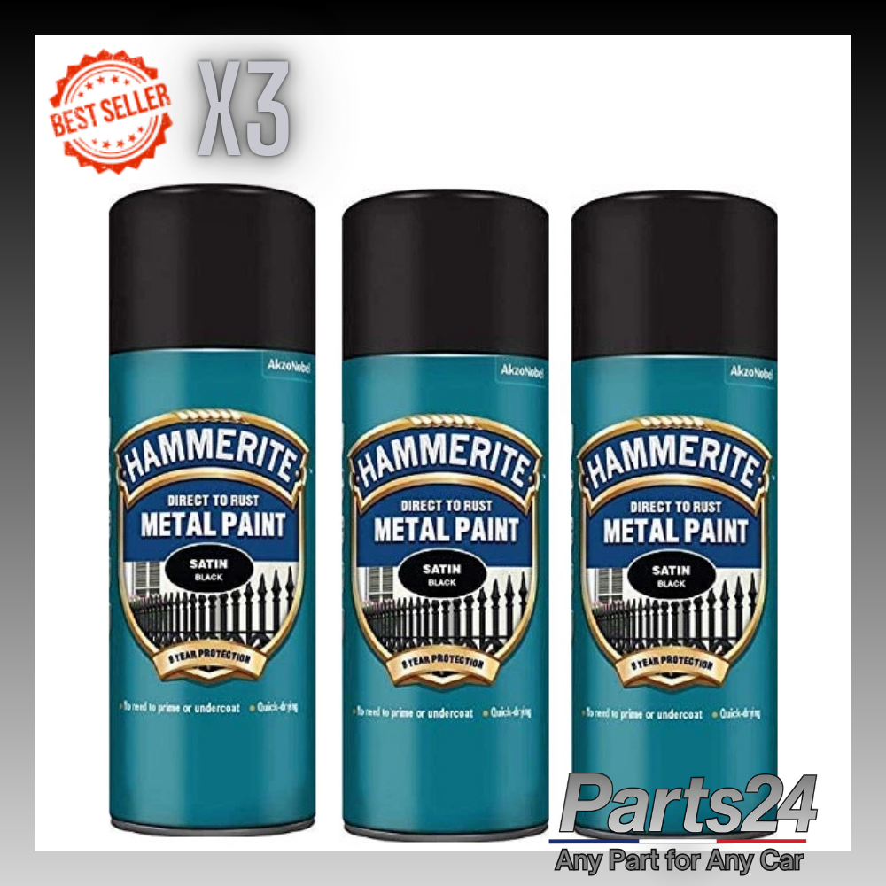 3x 400ml Hammerite SATIN BLACK Direct to Rust Metal Spray Paint Aerosol 400ml