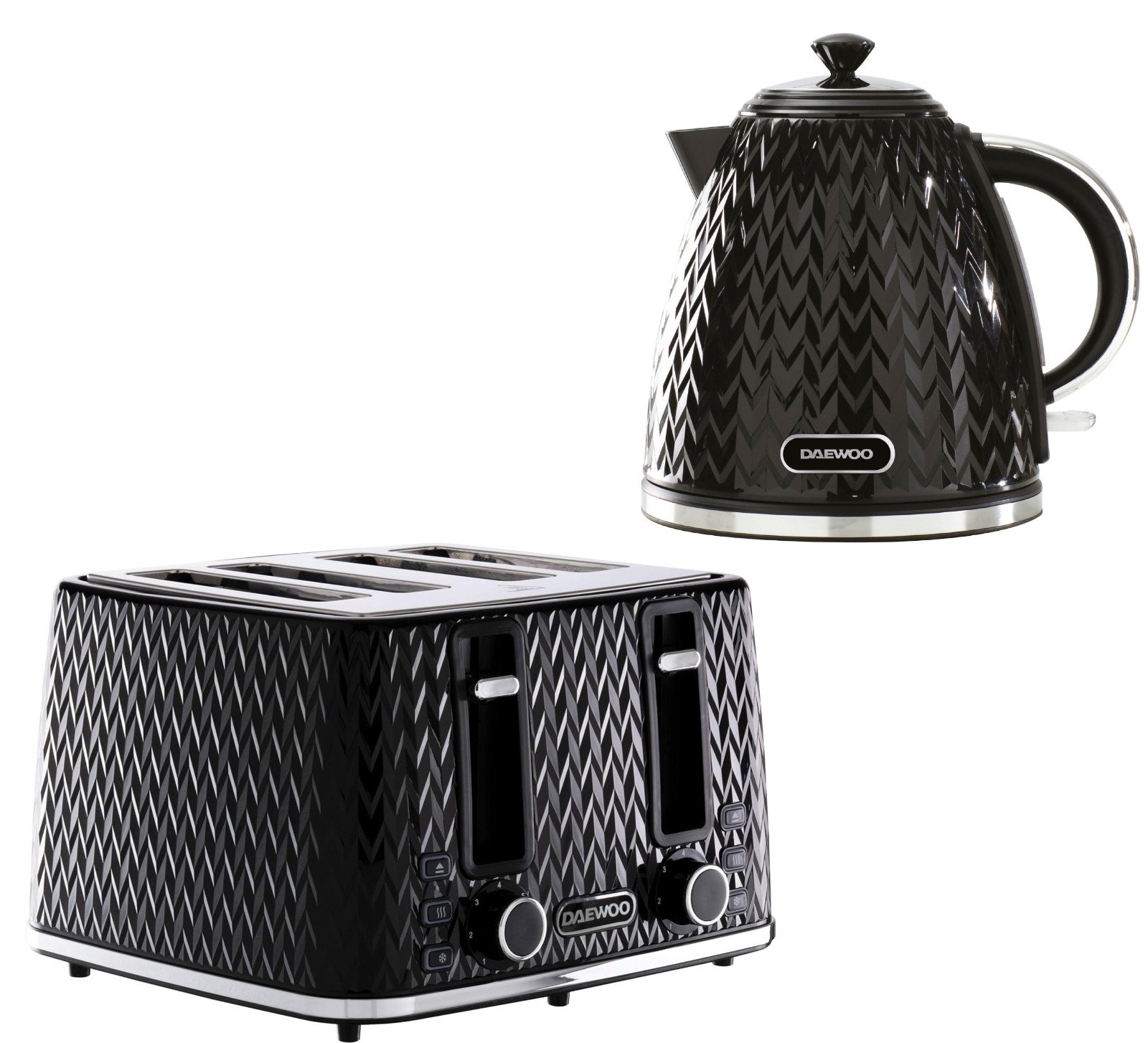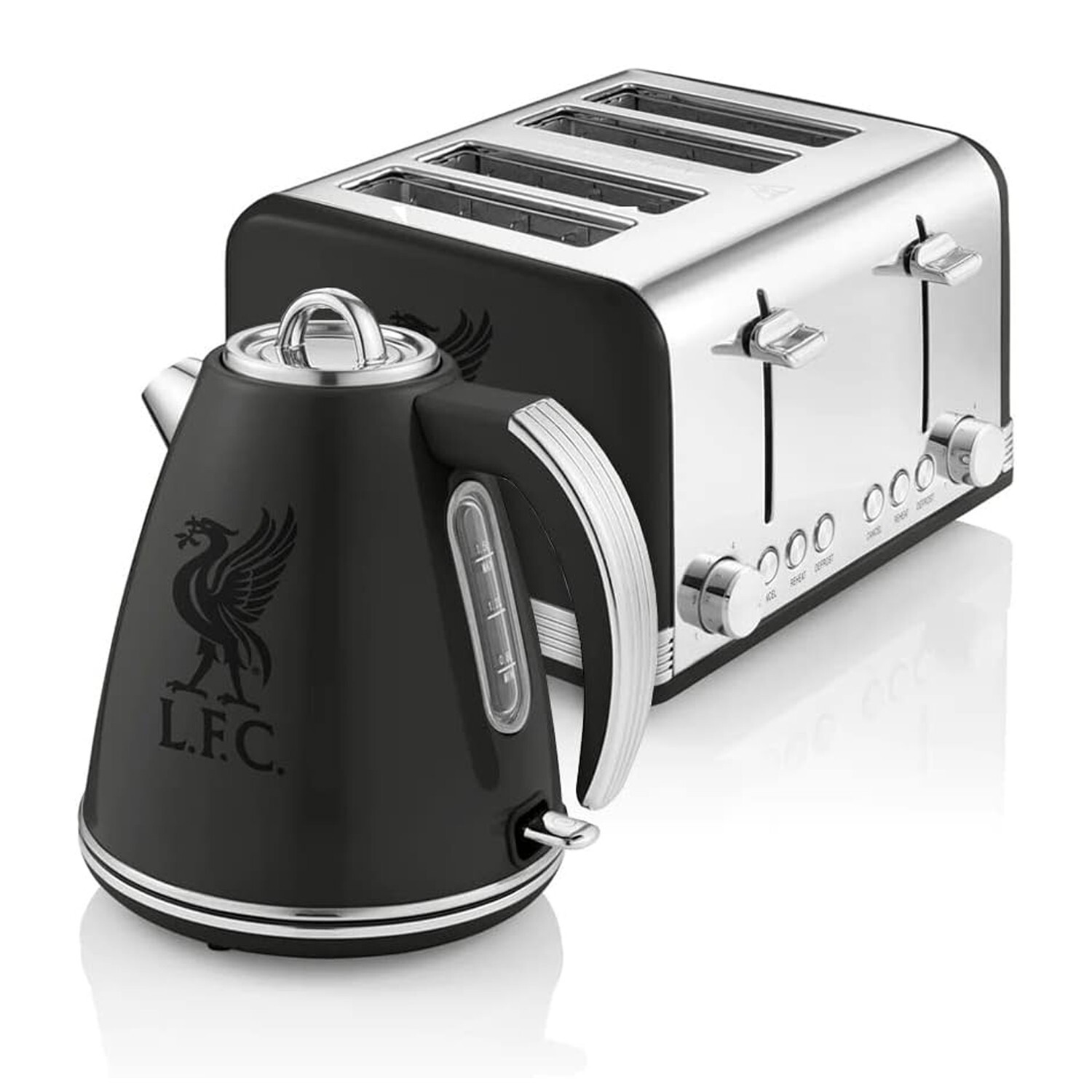 Black kettle and 4 slice toaster