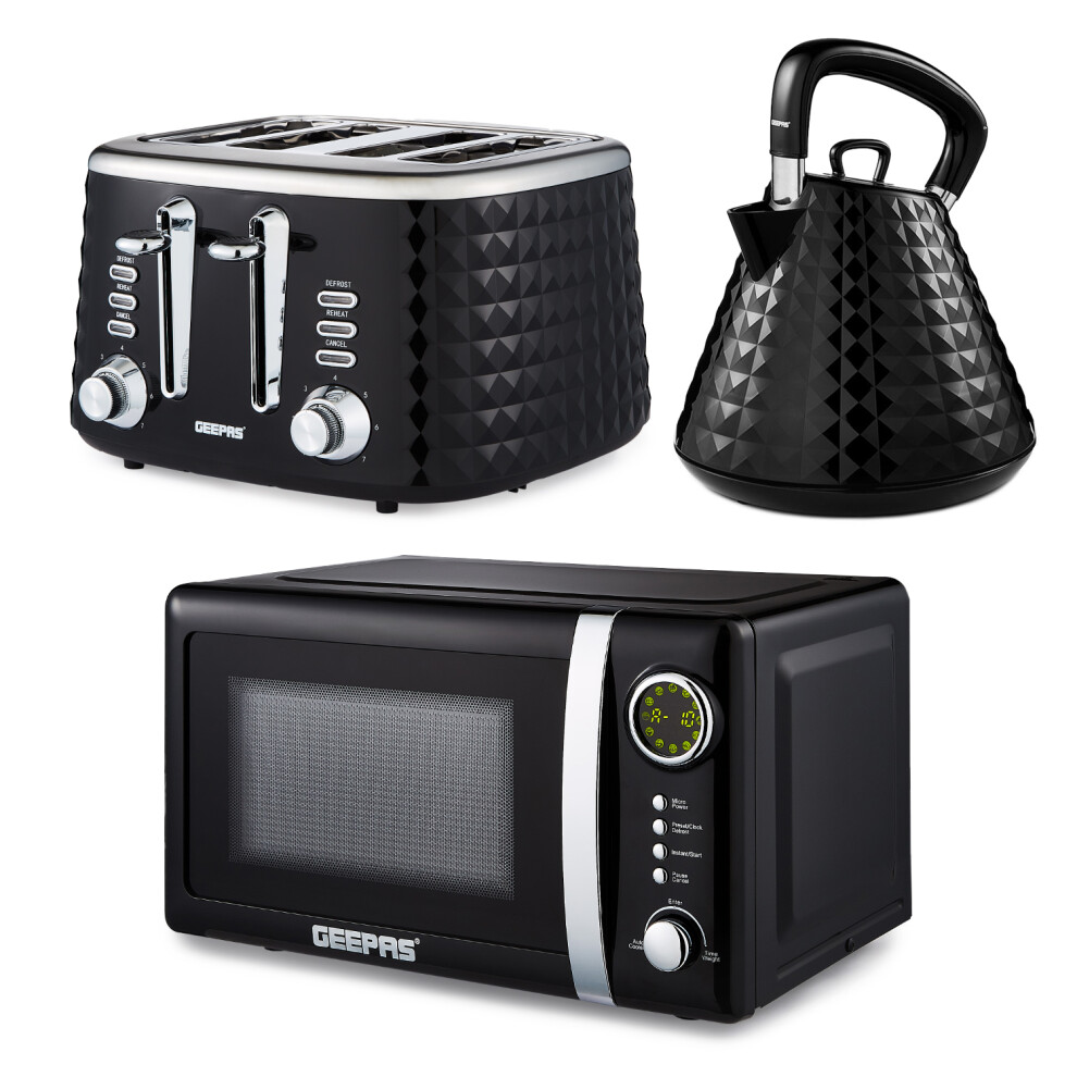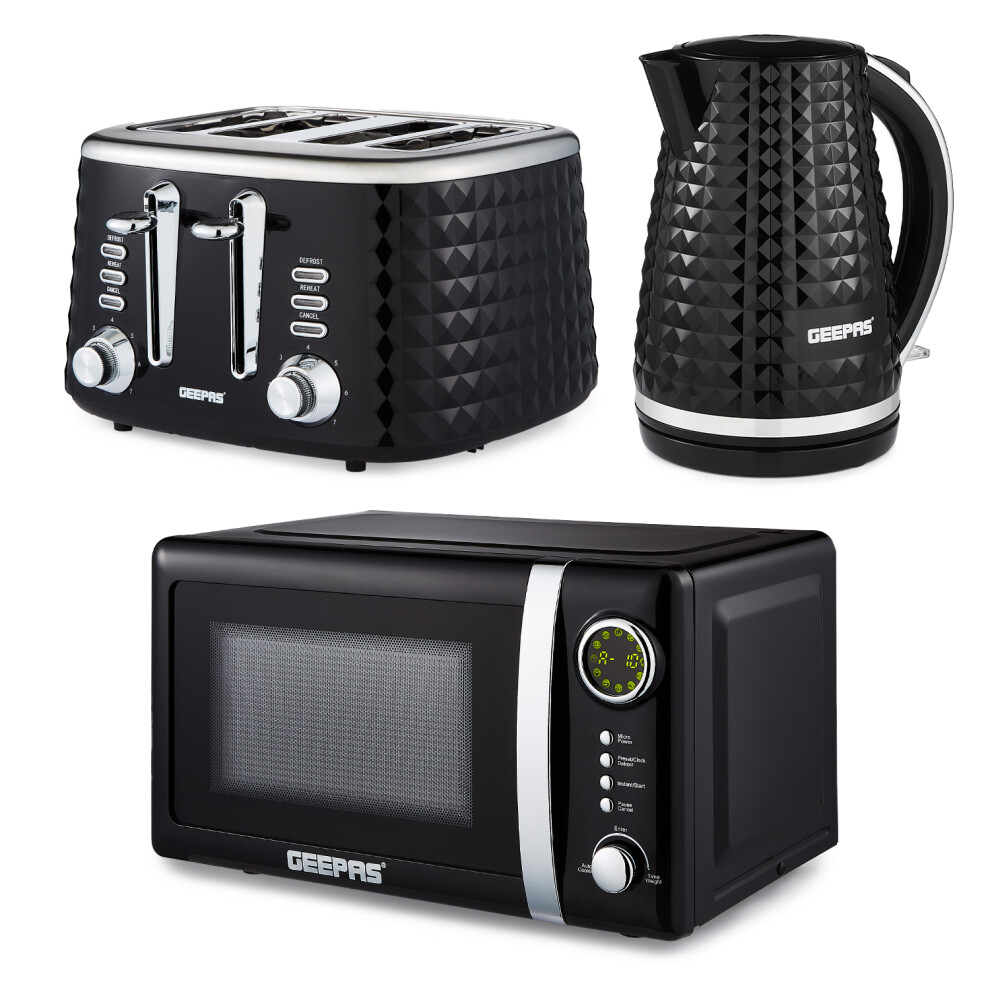 (Black) Geepas Electric Kettle, Toaster & Microwave Set
