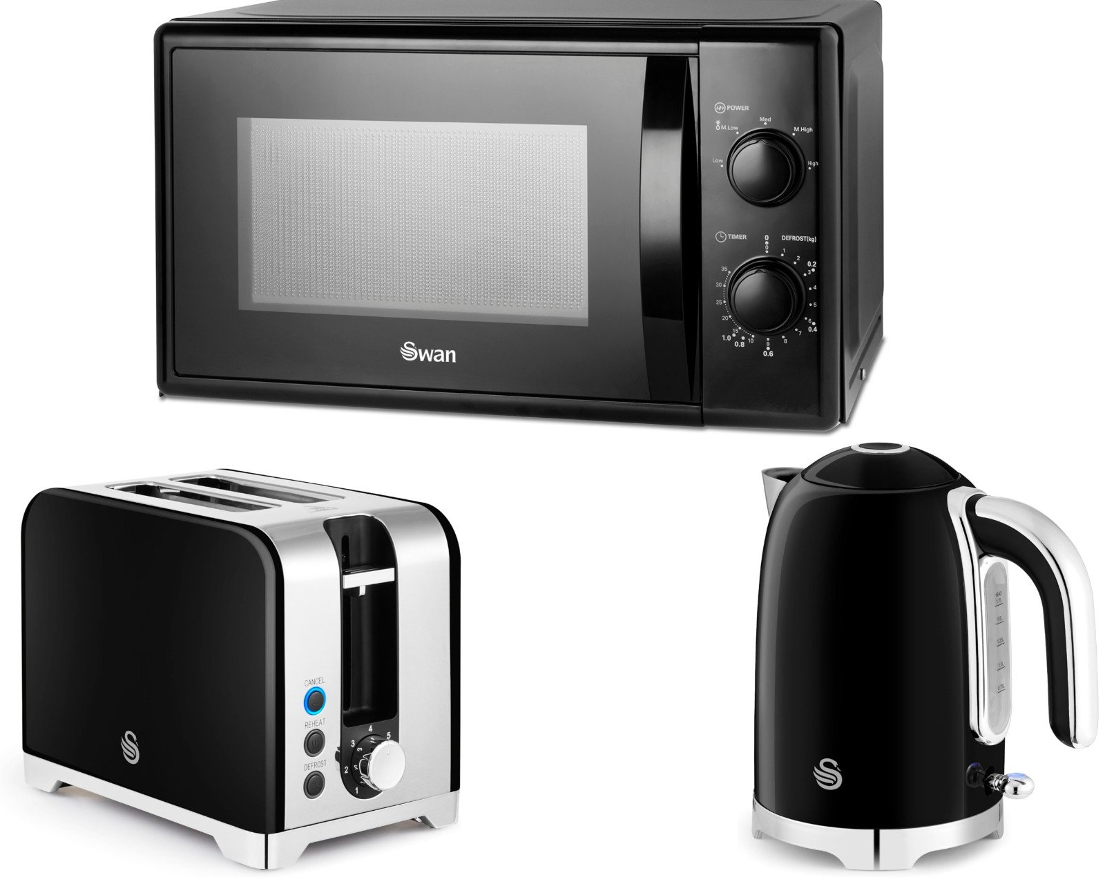 Swan Wave Black Kettle, 2 Slice Toaster & 700W 20L Microwave Kitchen Set