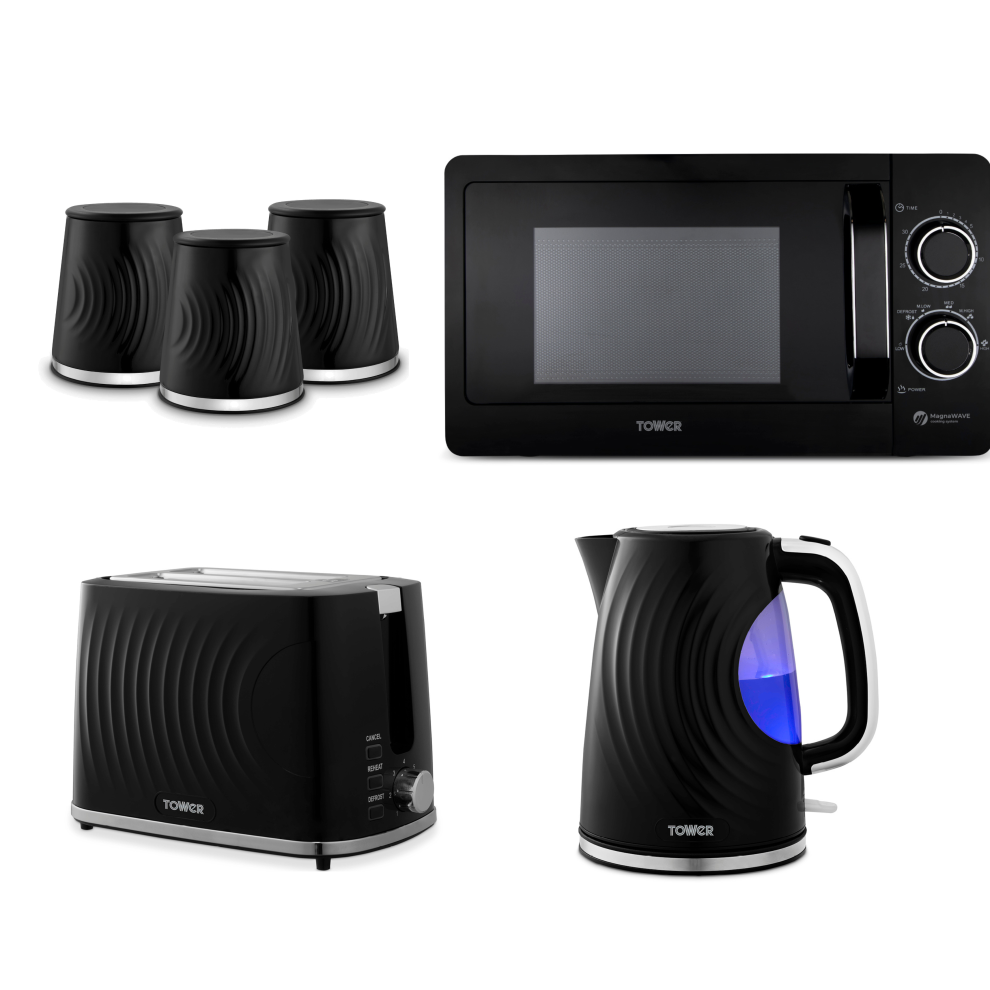 Tower Sonar Black Kettle Toaster Canisters & Microwave Kitchen Set