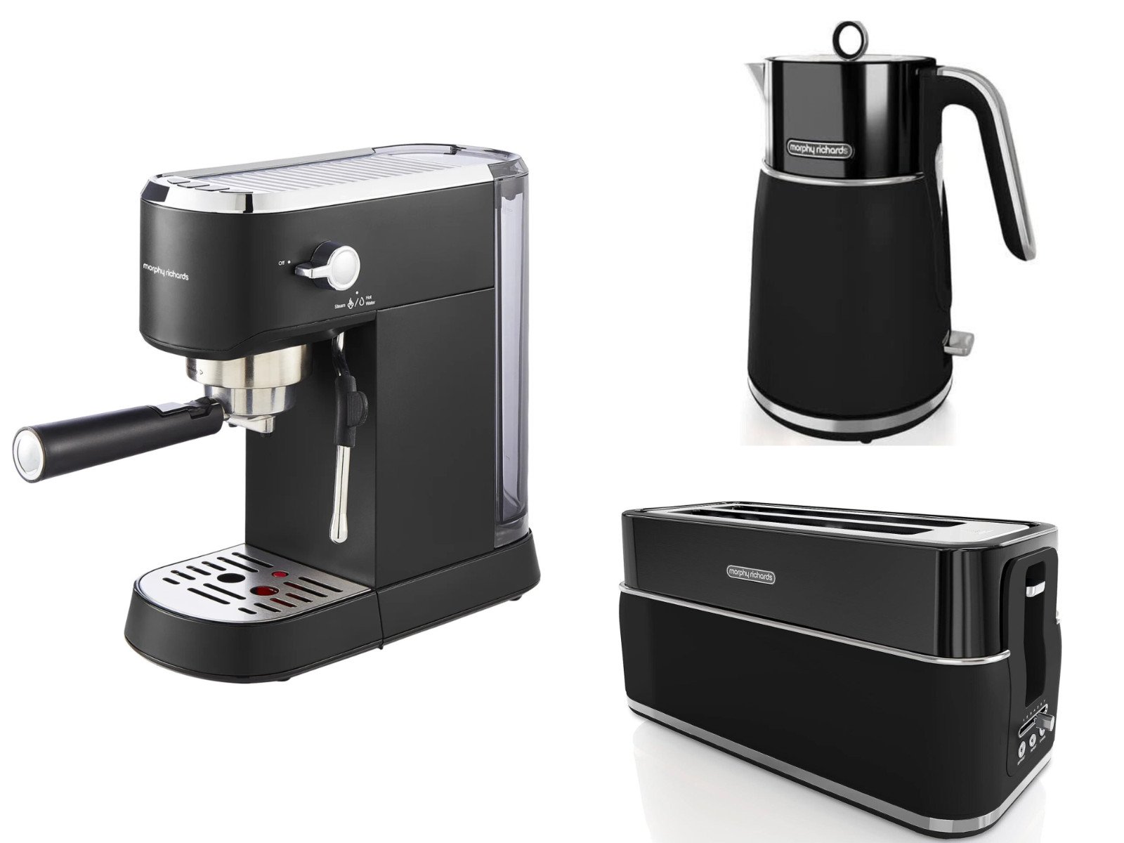 Morphy Richards Signature Black Kettle Toaster & Espresso Coffee Machine Set