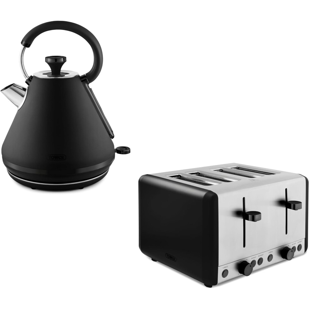 TOWER Cavaletto 4-Slice Toaster and Kettle Bundle - Black, Black
