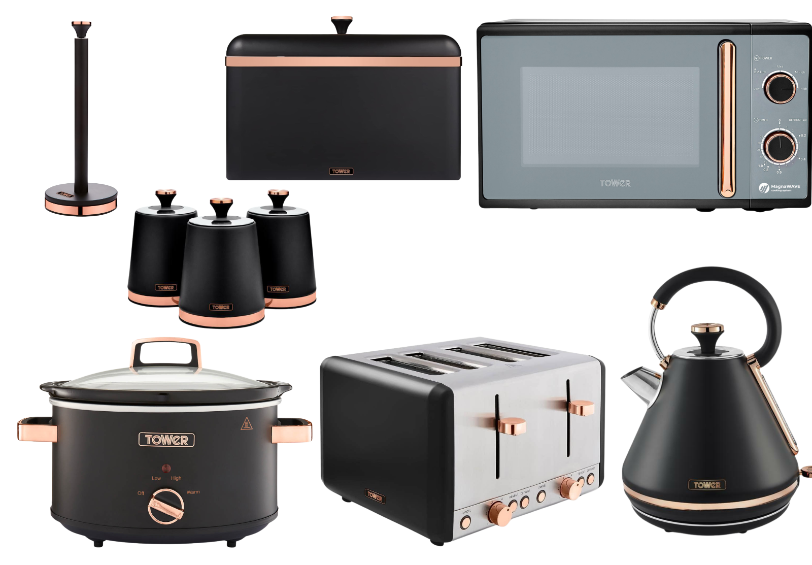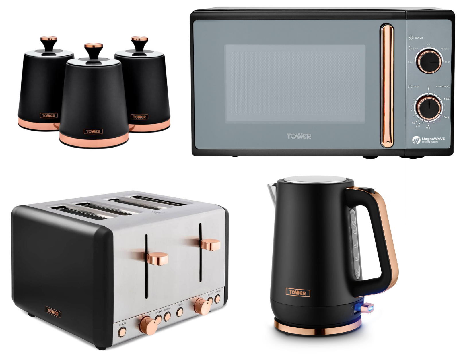 Tower Cavaletto Black Kettle Toaster Microwave Slow Cooker & Kitchen Storage Set
