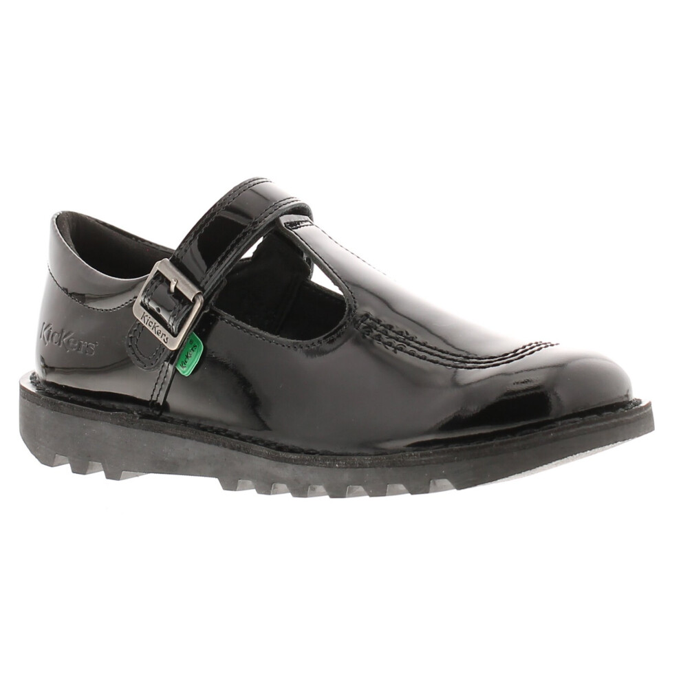 (UK 8.5, Black) Kickers FRAGMA T-BAR Girls Leather School Shoes Black