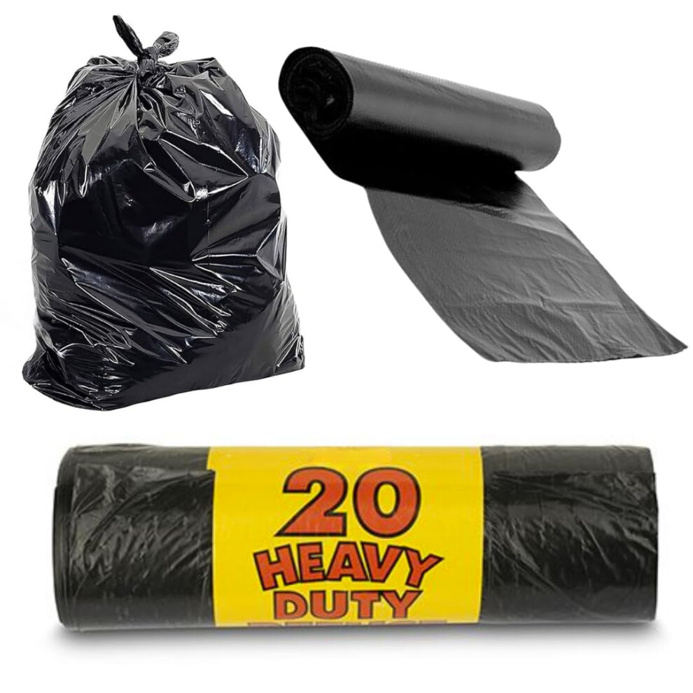 Citystores? 20 Bin Bags Roll Heavy Duty Black Refuse Sack Bin Liners 50L Extra Strong Garbage Bags for Home, Kitchen, Garden, Office Waste
