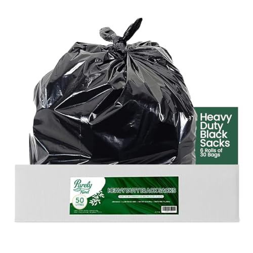 Blake & White Purely Kind Black Sacks 50L- Ultra Durable & Eco Friendly Recyclable Bin Bags - Heavy Duty Bin Liners for Household, Office, and Kitchen - Box of 180 (6 Rolls of 30 Bags)