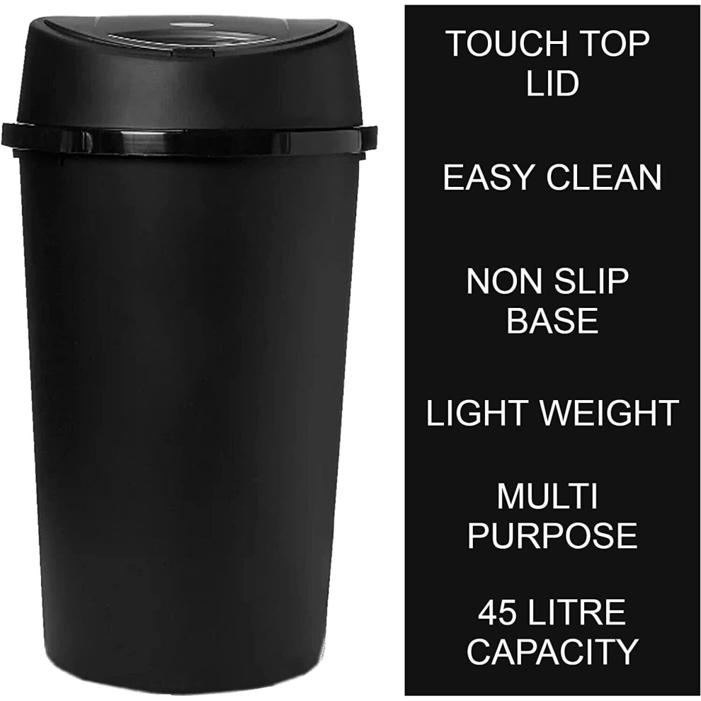 simpa 50 Litre 50L Black Plastic Touch Top Kitchen Bin Dustbin with Gloss Finish.