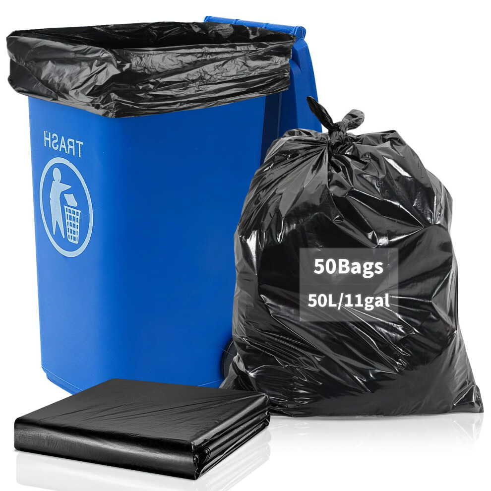 50 Pack Bin Bags Liners 50L Large Black Refuse Sacks Plastic Rubbish Garbage Trash Waste Bag for Kitchen Home Office