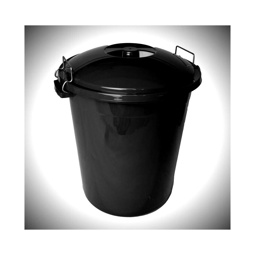 (Black) 50L Dustbin Clip Lid Bin Pet Food Container Garden Kitchen Waste Rubbish Bin