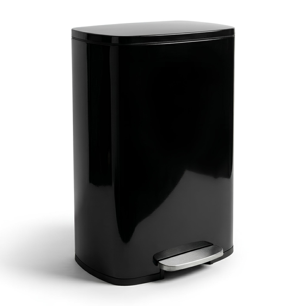 50L Square Stainless Steel Kitchen Pedal Bin - Black