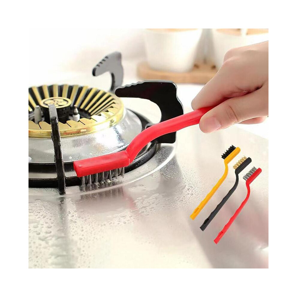 (black yellow red, 3pcs) Kitchen Stove Cleaning Brush, 3pcs Brass, Stainless Steel and Nylon Brush Head Brushes for Range Hood Grease Grime, Heavy Dut