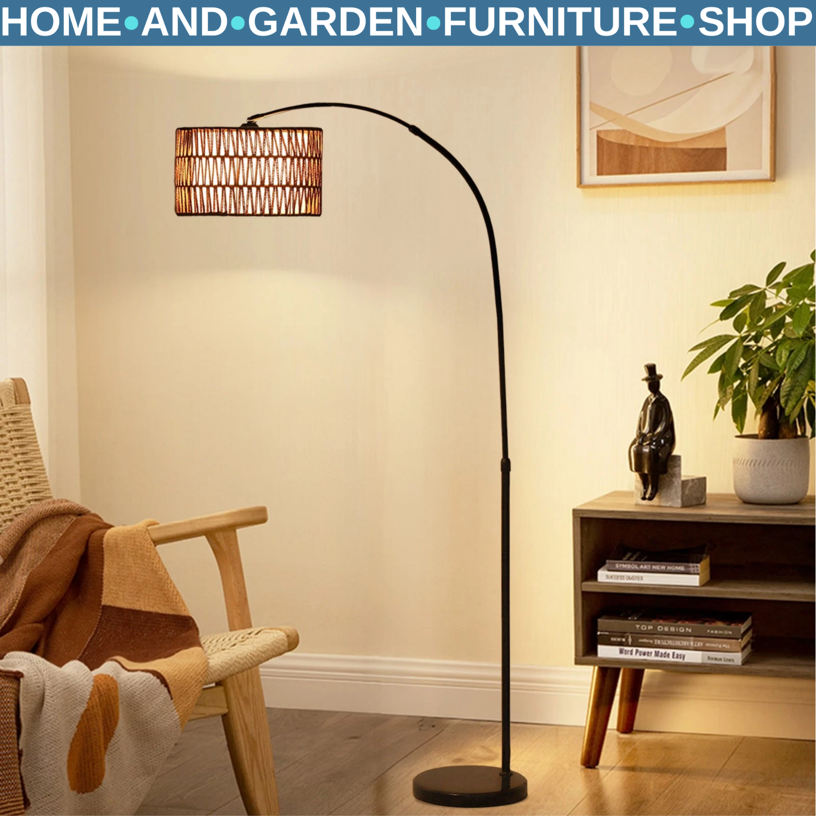 Black Floor Lamp Stable Arc Standing Light Dual Layer Shade Height Adjustable