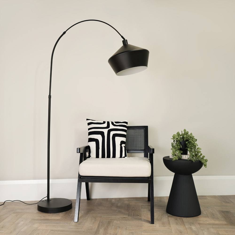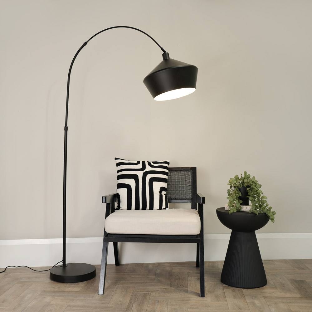 ValueLights Louis Black Arched Curved Floor Lamp with Black Metal Lamp Shade