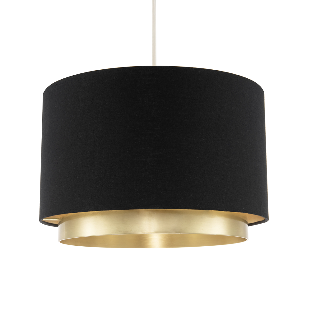Designer Black Cotton Fabric Lamp Shade with Brushed Gold Metal Ring by Happy...