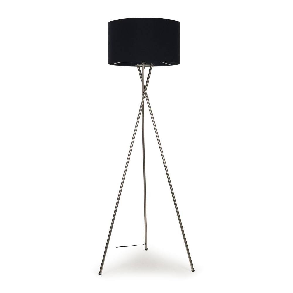 ValueLights Camden Brushed Chrome Tripod Floor Lamp with Black Drum Lamp Shade