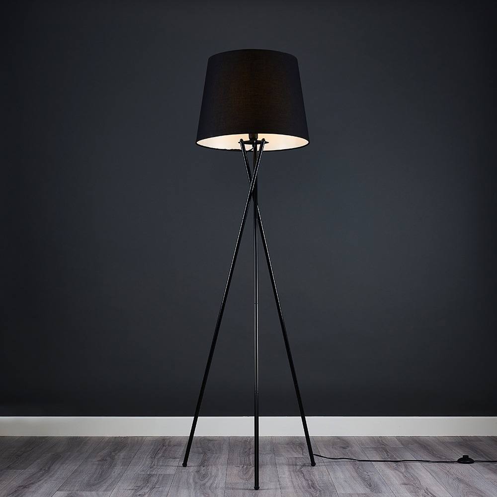 ValueLights Camden Black Metal Tripod Floor Lamp with Black Tapered Lamp Shade