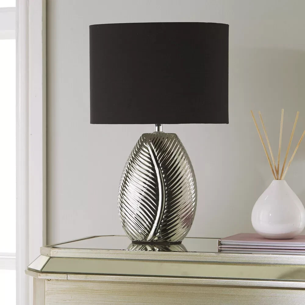 Silver Ceramic Table Lamp With Leaf Design And Black Lamp Shade Stunning Lamp
