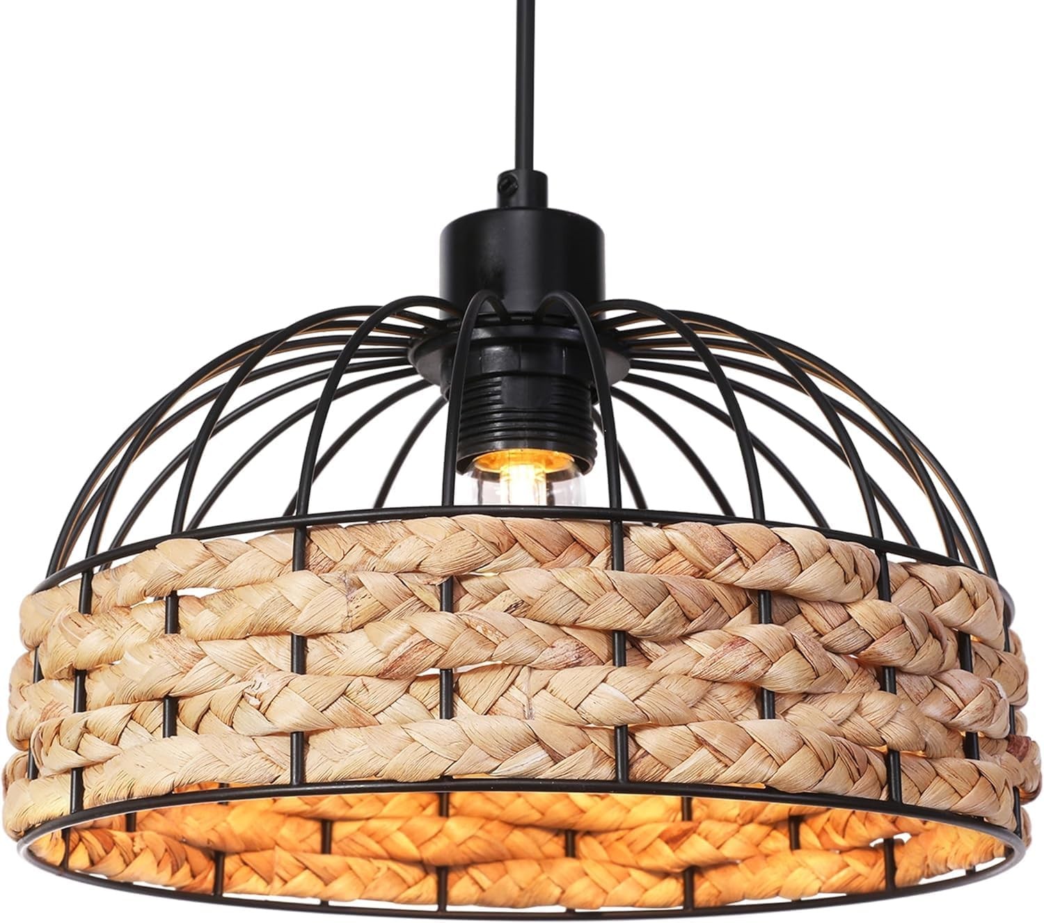 QTHWB Black Rattan Basket Lamp Shade Japanese Chandelier 1-Pack Boho Hollow Cage Dining Table Pendant Lamp Rustic Cage Woven Pendant Lights,Luxury