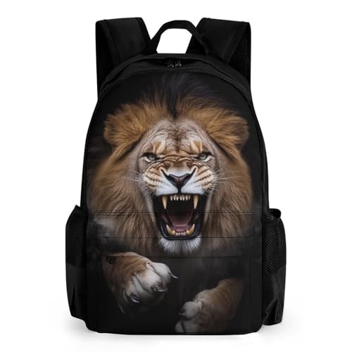 peiyeety Polyester Daypack Backpack for Sports Travel Running - Big Capacity Anti-Theft Multipurpose Carry On Bag, Angry Lion Black Laptop Book Bag Rucksack