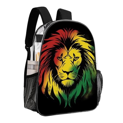 peiyeety Transparent Daypack Backpack for Sports Travel Running - Big Capacity Anti-Theft Multipurpose Carry On Bag, Rasta Lion Black Laptop Book Bag Rucksack