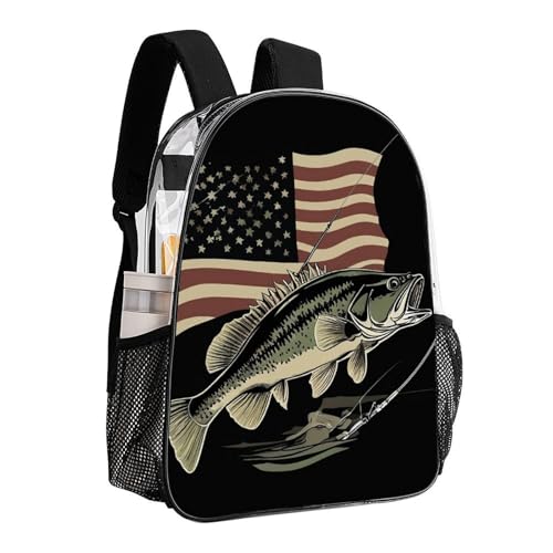 peiyeety Transparent Daypack Backpack for Sports Travel Running - Big Capacity Anti-Theft Multipurpose Carry On Bag, Bass Fishing Camo Camouflage American Flag Hunting Black Laptop Book Bag Rucksack