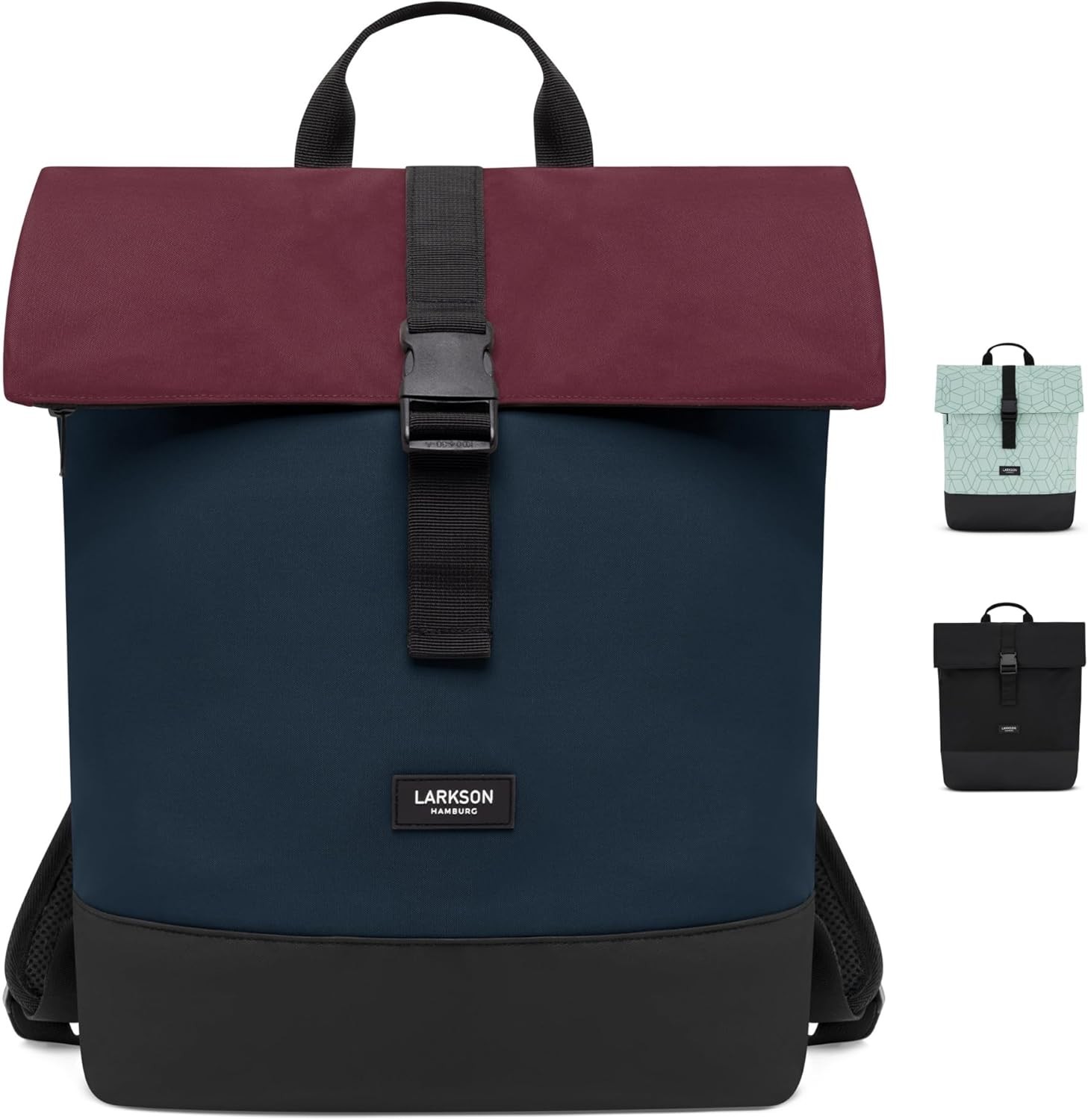 LARKSON Roll Top Backpack Women & Men Black - No 2 - Rucksack for University, School, Office - College Laptop Bag 16 Inches - Water-Repellent