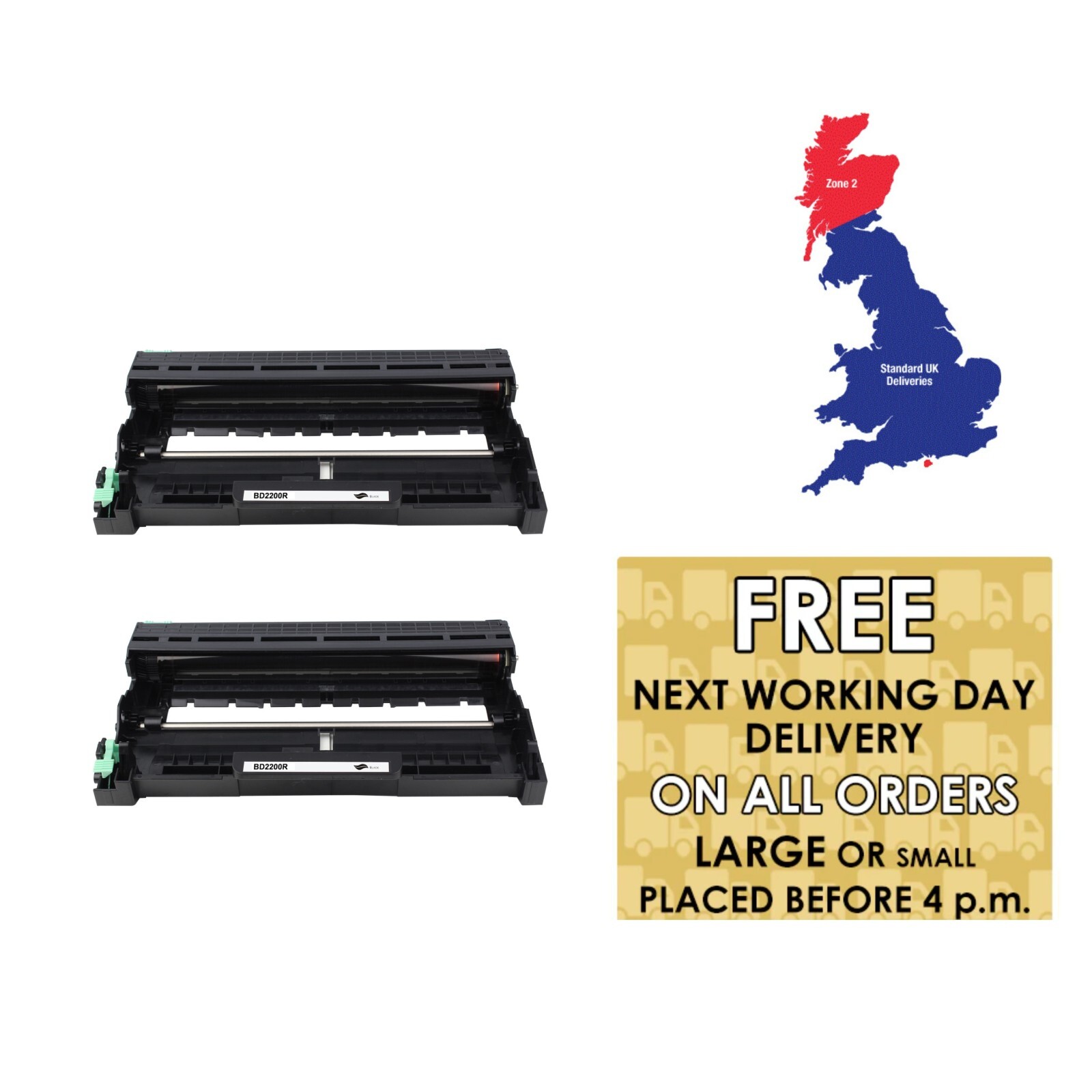 Drum for Brother DCP-7055W Printer Laser Unit DR2200 Compatible Black 2 Pack
