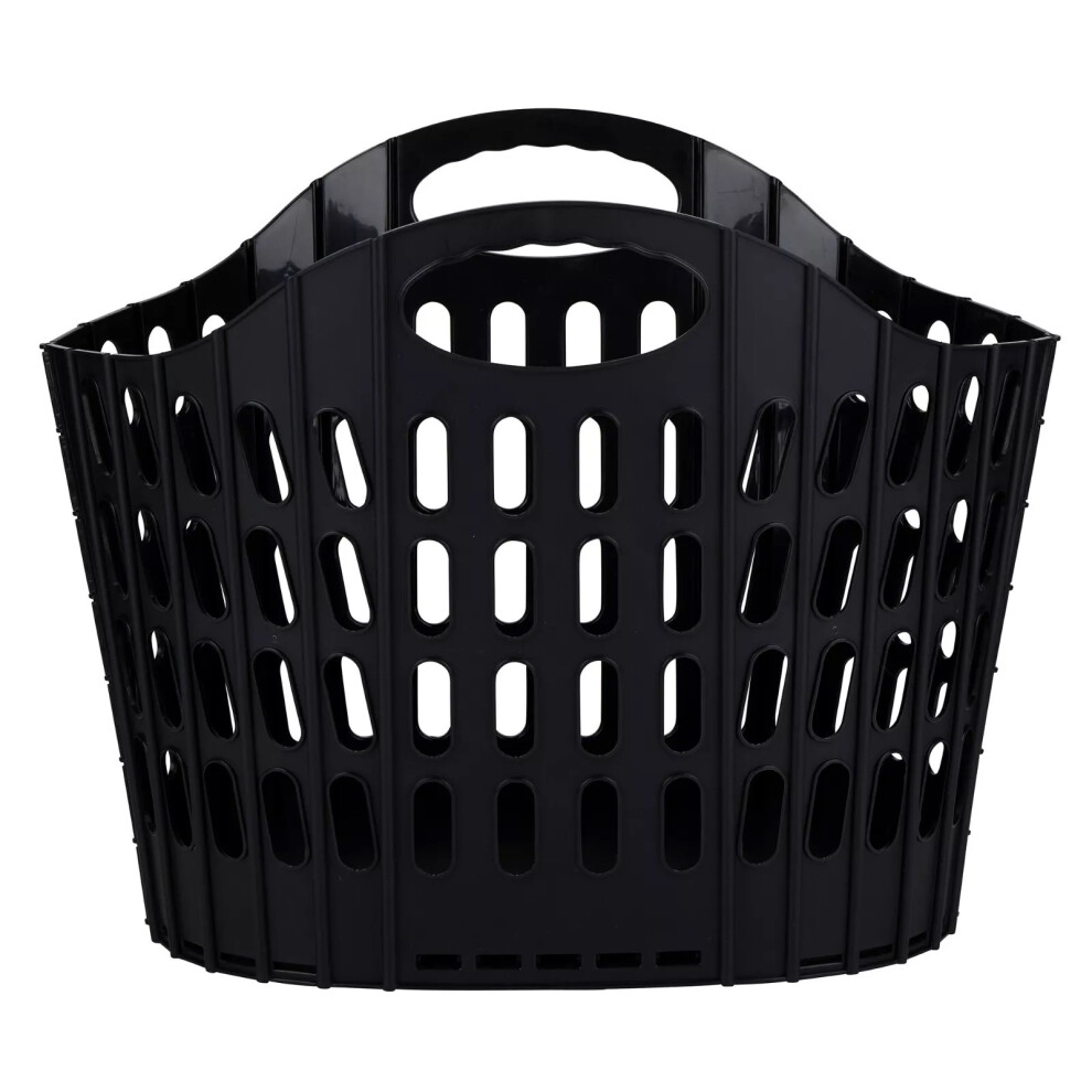 (Black) Folding Laundry Basket Plastic Space Saving Clothes Washing Hamper 25L
