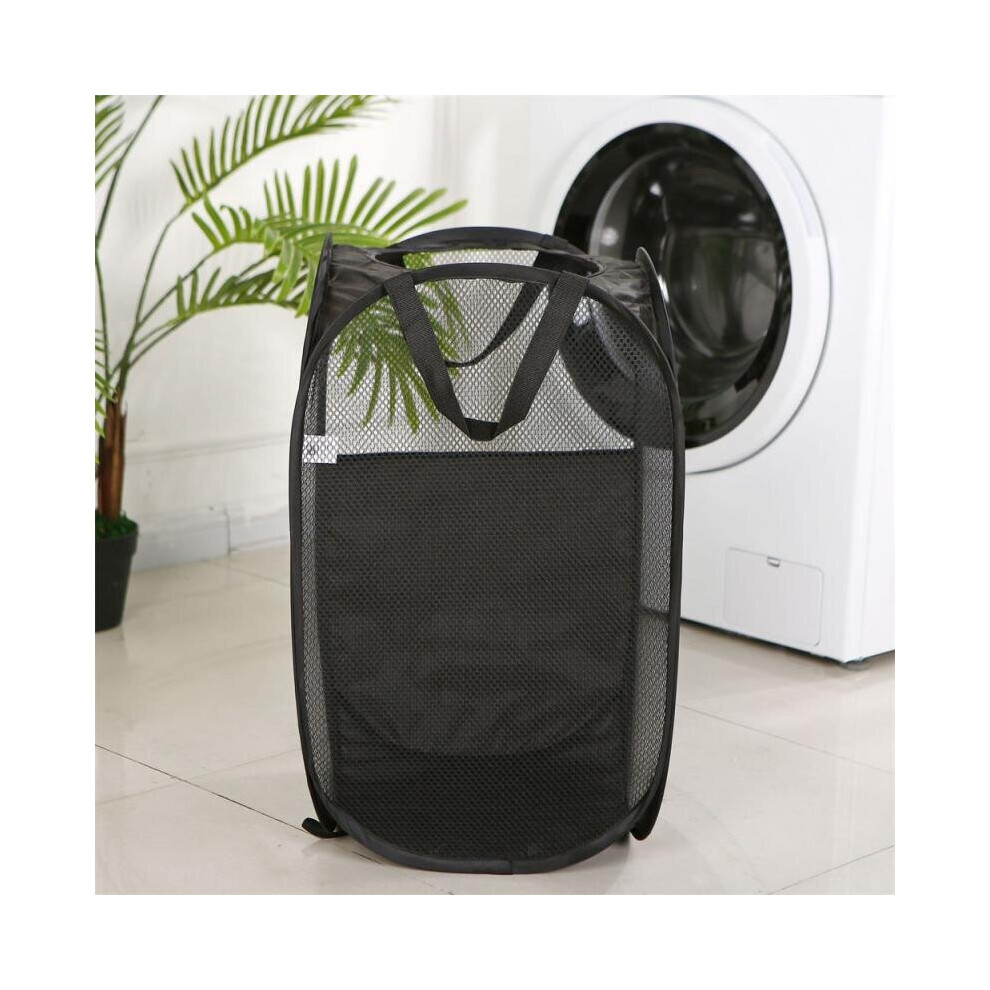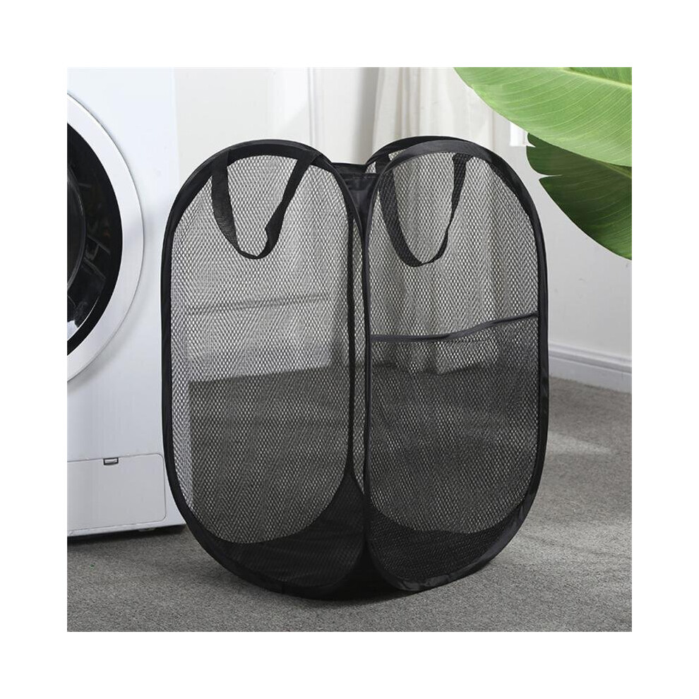 (a-Mesh Pocket Black) Folding Laundry Basket Organizer For Dirty Clothes Bathroom Clothes Mesh Storage Bag Household Wall Hanging Basket Frame Bucket