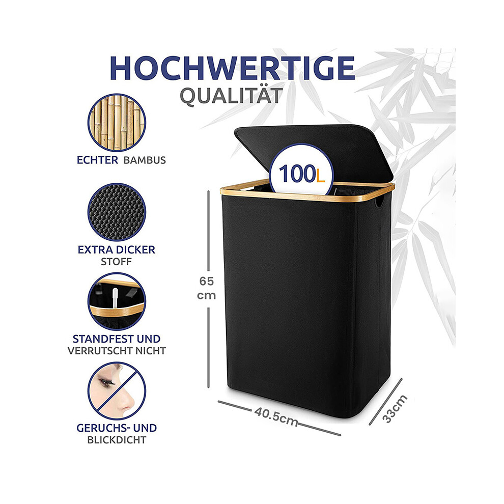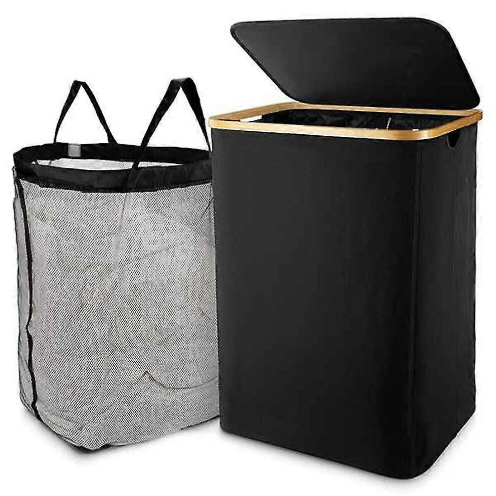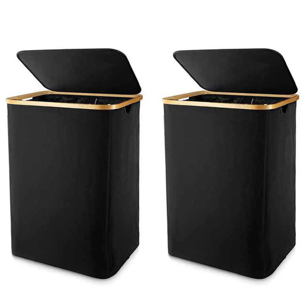 2X Laundry Basket with Lid, Black Laundry Basket with Removable Laundry Bag - Laundry Sorter for Bathroom & Bedroom