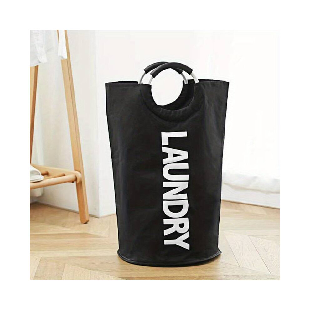 Black Large Washing Laundry Basket Hand Stitched Collapsible Fabric