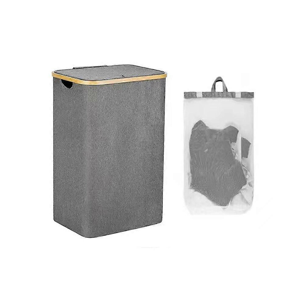 (Grey, One size) Laundry Basket With Lid, Black Laundry Basket With Removable Laundry Bag - Laundry Sorter For Bathr